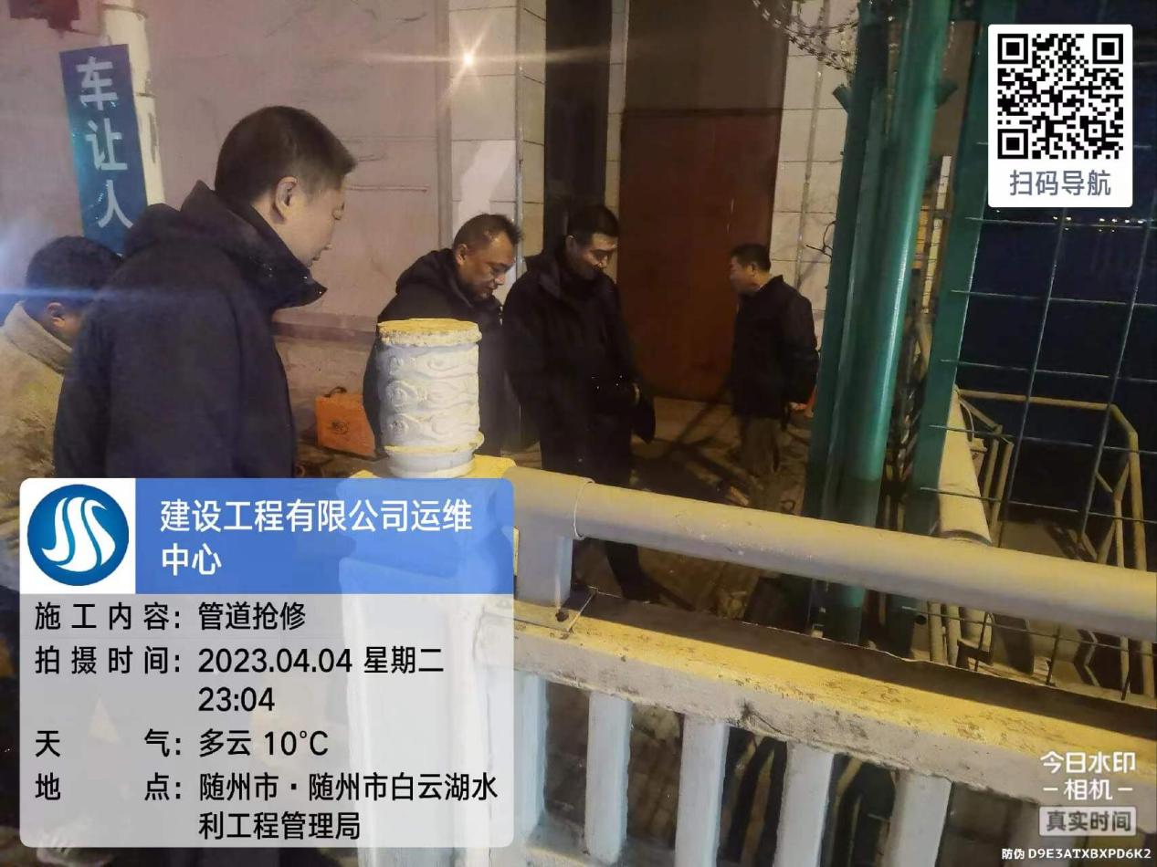 4月4日,水務集團接到一條熱線工單,反映位于白云湖大壩舜井大橋路段處一根DN700的主供水管網(wǎng)破裂需盡快修復。盡管已是夜間,水務集團維修人員仍火速趕至現(xiàn)場,當即確定漏水管線影響范圍,及時關閉閥門并向受影響小區(qū)發(fā)布停水通知。