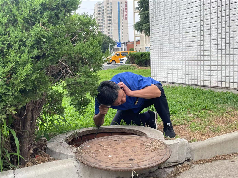 經(jīng)現(xiàn)場查看,測漏人員只能對已知閥門、雨水井逐一進行排查。只見他們掀開井蓋,將聽音桿的底部抵在閥門井里的管道上,側(cè)耳俯身,持續(xù)傾聽有沒有刺耳的漏水聲音,在炎熱的天氣下專心聽漏,經(jīng)過認真細致劃分區(qū)域節(jié)點,反復地聽音、定點,當排查至水表井附近時,看到水表井里的積水當即安排抽水,工作人員彎身爬到水表井下深入細聽,最終在DN300水泥管找到漏點,定好位做出標記,立即安排搶修人員組織搶修,經(jīng)過挖掘、清理、焊接、維修、通水。城市供水公司持續(xù)開展“免費聽漏測漏”活動,堅持問題導向,立足企業(yè)需求,全心全意解企憂、解企難,幫助有需要的企業(yè)用戶查找漏點,便于及時堵漏,節(jié)約水資源。