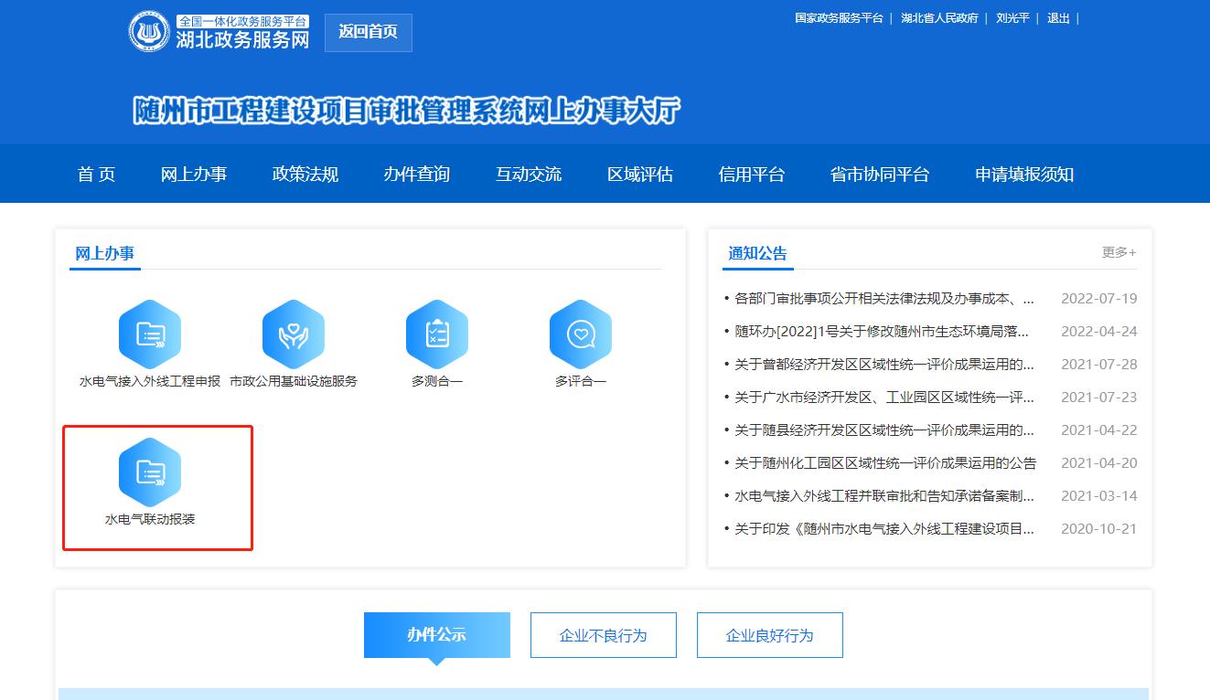 工程建設(shè)項目審批平臺報裝入口