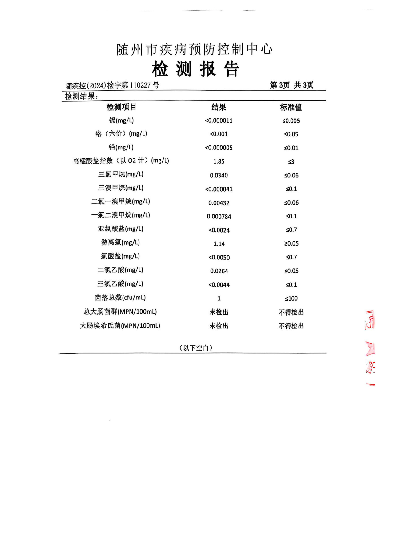 二、我公司在水質(zhì)管理上嚴(yán)格執(zhí)行兩級(jí)管理、三級(jí)檢測(cè)制度,出廠(chǎng)水水質(zhì)均符合國(guó)家《生活飲用水衛(wèi)生標(biāo)準(zhǔn)》GB5749-2022的要求,請(qǐng)廣大用戶(hù)放心使用。