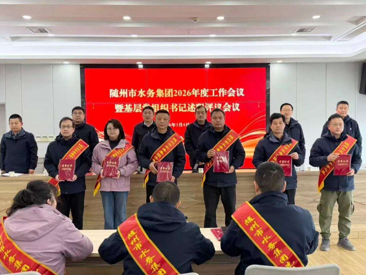 3月2日,隨州水務(wù)集團(tuán)召開2026年工作會議暨基層黨組織書記述職評議會議。會議深入學(xué)習(xí)貫徹上級精神,全面總結(jié)2025年工作,表彰先進(jìn)典型,系統(tǒng)部署2026年重點任務(wù),動員全體干部職工實干篤行、奮勇爭先,奮力開創(chuàng)集團(tuán)高質(zhì)量發(fā)展新局面。集團(tuán)黨總支書記、董事長桂維國出席會議并講話,集團(tuán)黨總支副書記、總經(jīng)理嚴(yán)賢江主持會議。