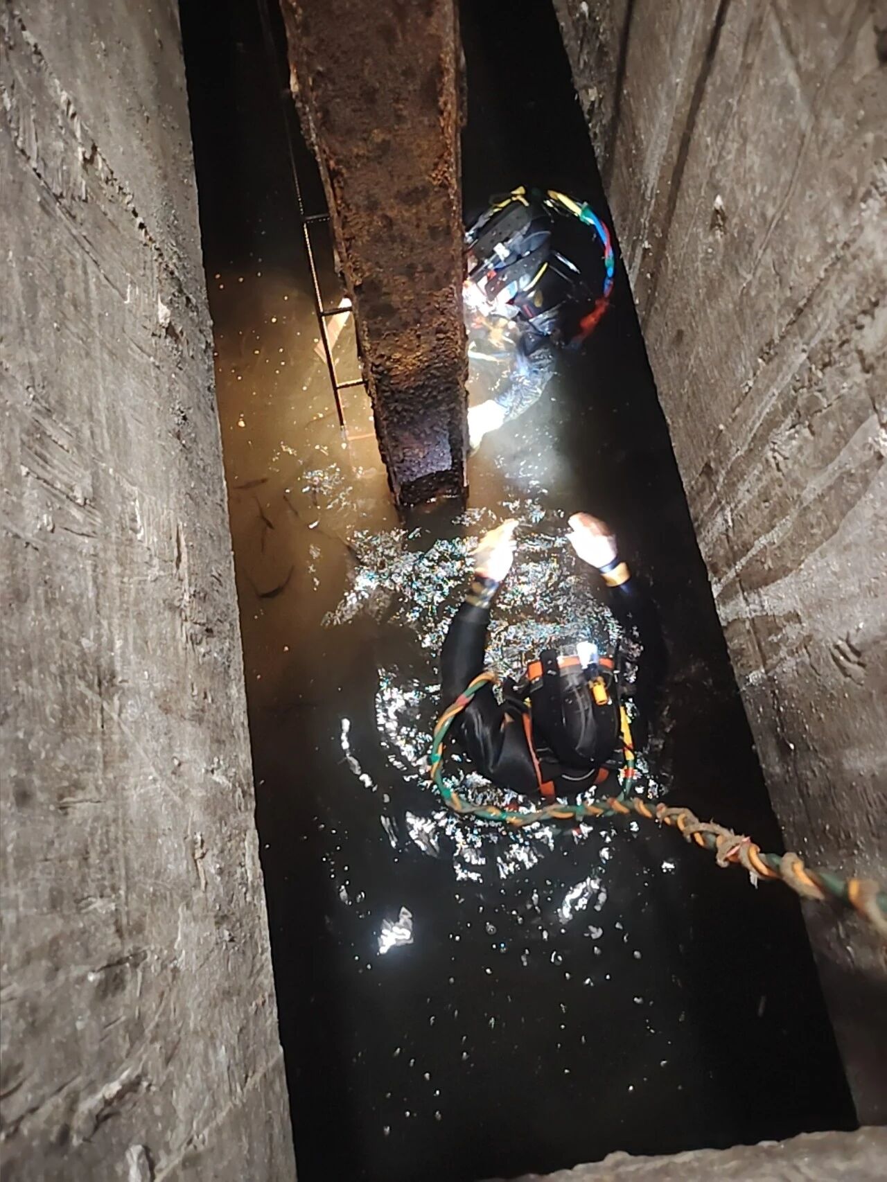 3月24日清晨,隱患檢修作業(yè)正式啟動。封江水廠提前儲備應(yīng)急水源,全程保障供水不間斷;集團及公司領(lǐng)導(dǎo)現(xiàn)場指揮,嚴格把控安全與施工質(zhì)量。專業(yè)潛水人員在復(fù)雜水下環(huán)境中精準操作,安全員全程實時監(jiān)護,技術(shù)人員同步記錄施工全過程,以零誤差、零失誤標準推進每一道工序。